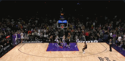 在最后3秒時,布克對詹姆斯三分犯規(guī),因?yàn)椴伎嗽谡材匪归_始向上做投籃動作時,與詹姆斯的右臂或手腕發(fā)生接觸。