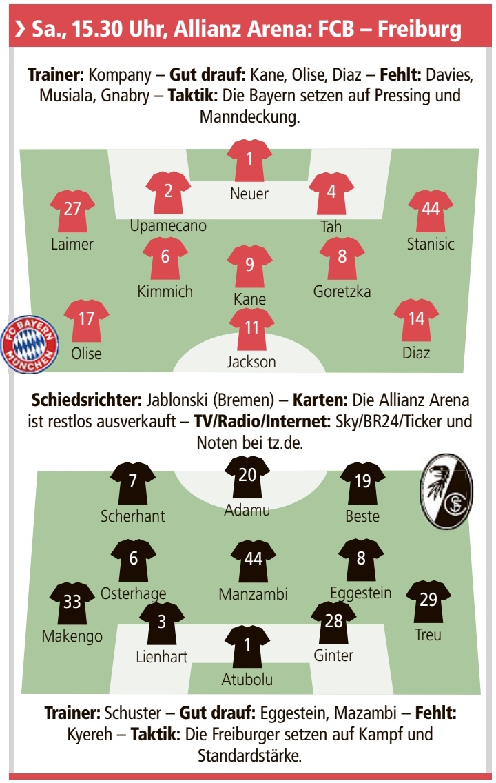 雷速體育11月21日訊 北京時間周六晚,德甲第11輪弗賴堡客場對陣拜仁慕尼黑。
