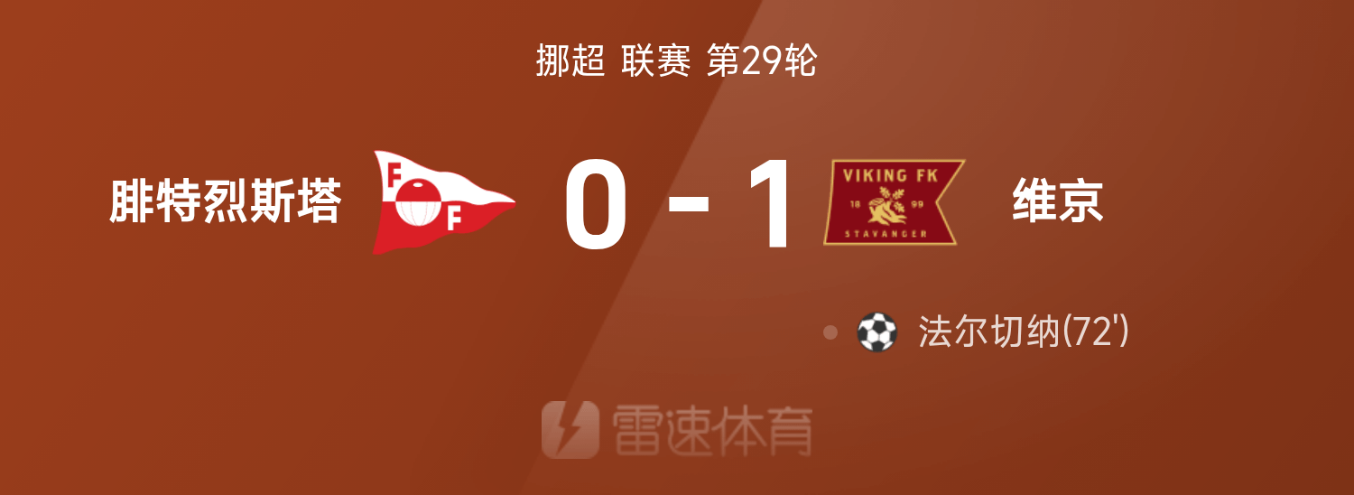 雷速體育11月24日訊 25賽季挪超聯(lián)賽第29輪,維京1-0戰(zhàn)勝腓特烈斯塔。