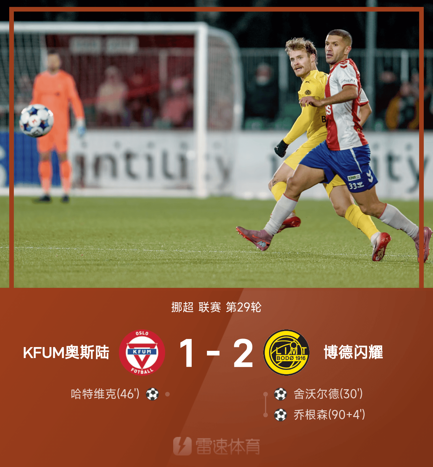 挪超戰(zhàn)報(bào):喬根森補(bǔ)時(shí)絕殺,博德閃耀2-1奧斯陸保留爭冠懸念