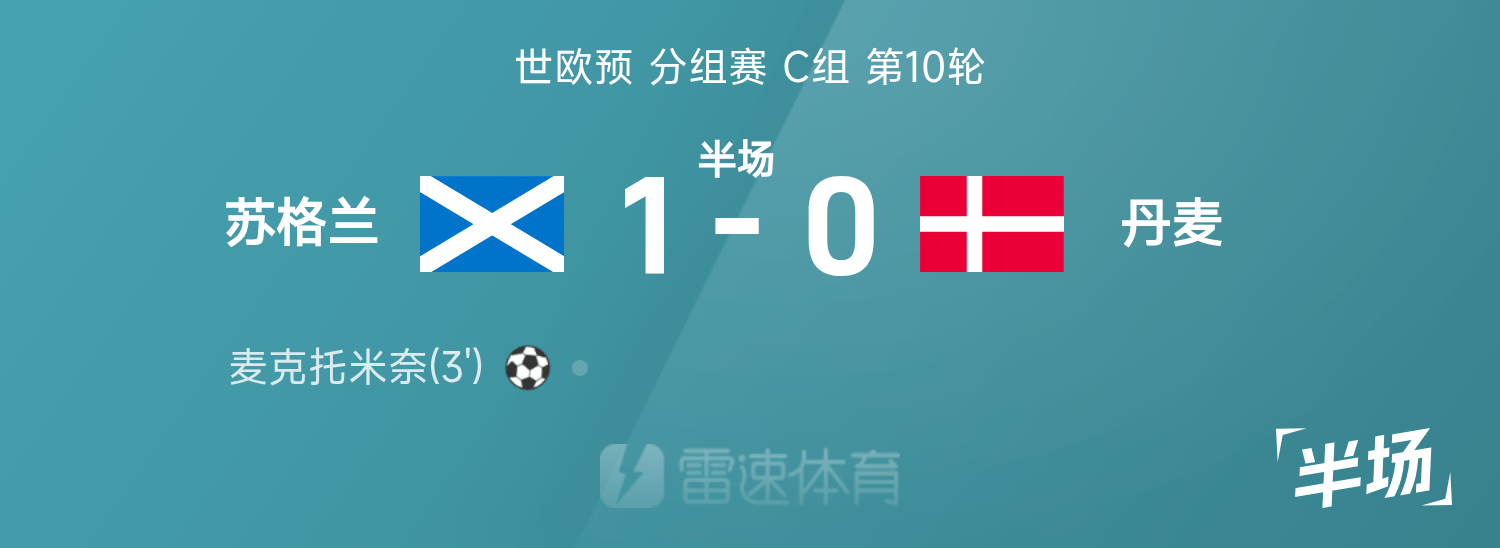 雷速體育11月19日訊 26賽季世歐預(yù)分組賽C組第10輪,蘇格蘭迎戰(zhàn)丹麥。