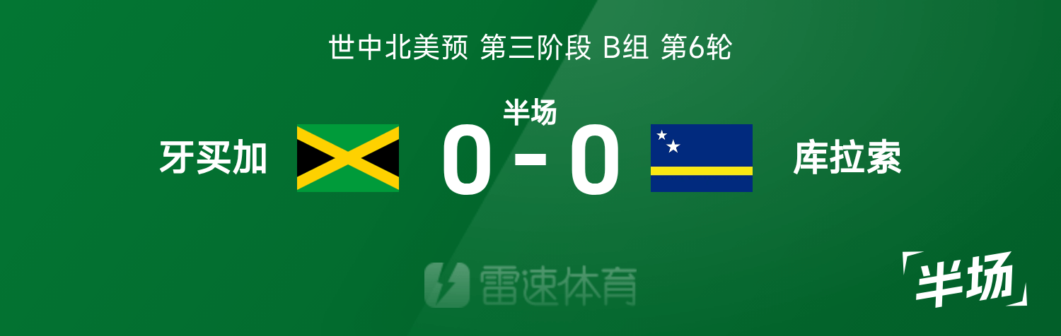 雷速體育11月19日訊 世中北美預(yù)第三階段B組第6輪,牙買加主場(chǎng)迎戰(zhàn)庫(kù)拉索。