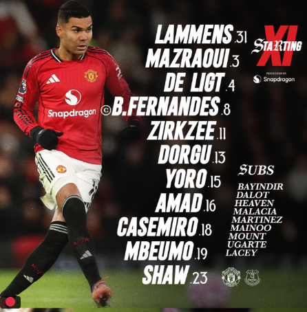 雷速體育11月25日訊 25/26賽季英超聯(lián)賽第12輪,曼聯(lián)迎戰(zhàn)埃弗頓。