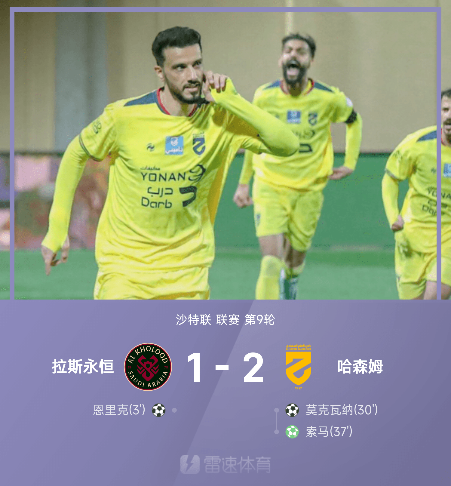 雷速體育11月21日訊 25/26賽季沙特聯(lián)聯(lián)賽第9輪,拉斯永恒迎戰(zhàn)哈森姆。