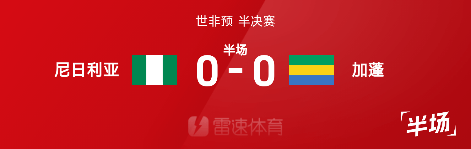 雷速體育11月14日訊 26賽季世非預(yù)半決賽,尼日利亞迎戰(zhàn)加蓬。上半場比賽,尼日利亞多次形成威脅,卻都被加蓬門將姆巴巴化解。半場戰(zhàn)罷,尼日利亞暫0-0加蓬。