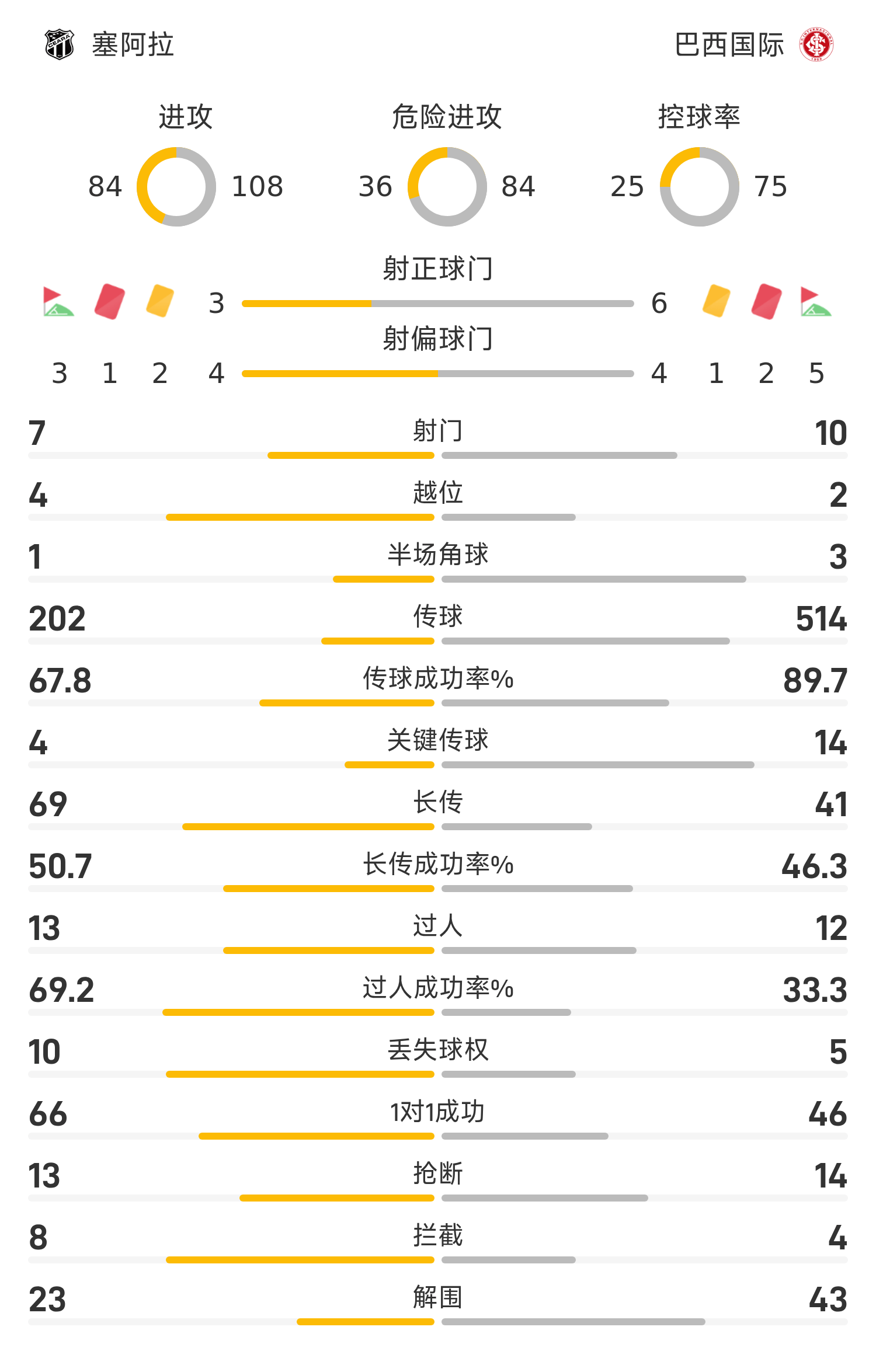 87’馬蒂亞斯左路突破后小角度推射破門,塞阿拉1-2巴西國際