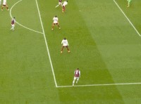 所以在第28分鐘,阿斯頓維拉完成搶斷之后,發(fā)動了左路的進攻,一腳傳中打到禁區(qū)內,便來到了后點的卡什腳下: