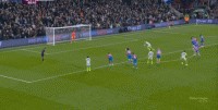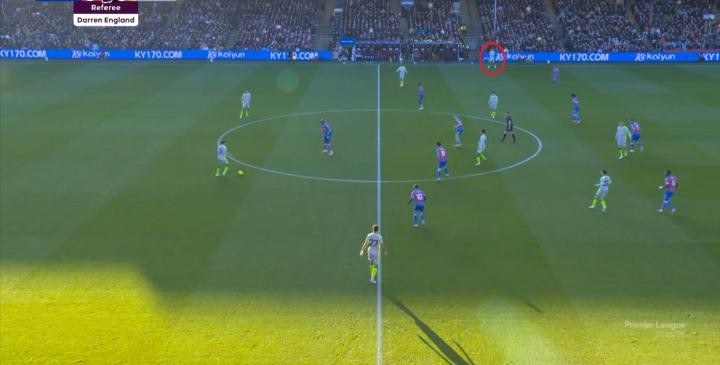 不過,人還在,精力不可能和上賽季類似,所以哪怕在主場,水晶宮依然保守應(yīng)對,直至第10分鐘,采用連續(xù)爭高球的方式打進了禁區(qū):