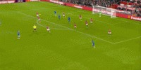 第二球,就是清晰的戰(zhàn)術(shù)準(zhǔn)備的結(jié)果,因?yàn)樵趤淼角皥?chǎng)的路上,你可以清晰看到是塞門約在一路跟防盧克-肖,他和身后的右后衛(wèi)在執(zhí)行嚴(yán)格的人盯人:
